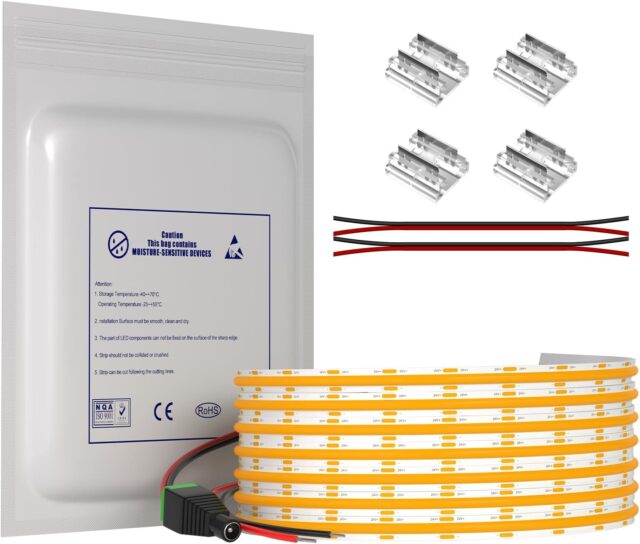 Amazonにて「COB LED Tape Light, 32.8 ft (10 m), 12 V, Warm White 2700K, Dimmable, 3120 LEDs, High Brightness, 0.3 inch (8 mm) Width, Cuttable, High Color Rendering CRI90, Adhesive Tape, Indirect Lighting, Store」が特価4541円で販売中です。