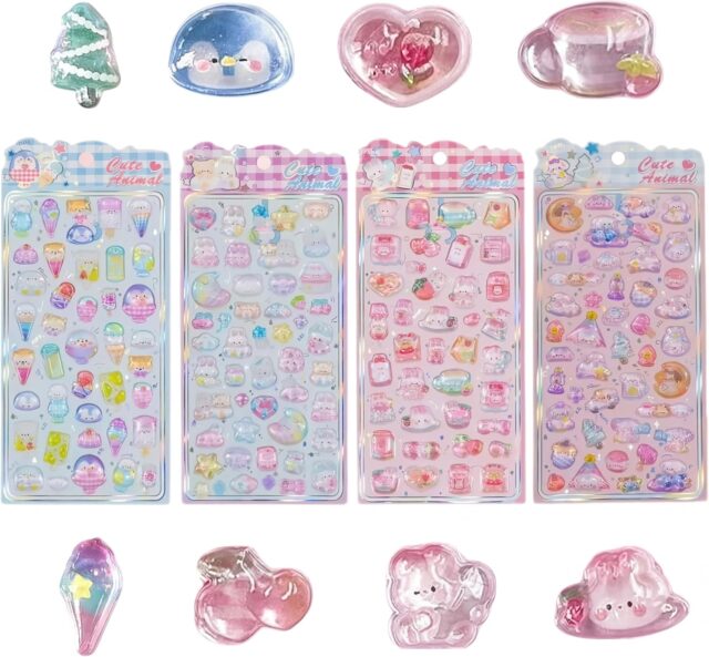 Amazonにて「3D Transparent Solid Stickers, Pack of 4, Cute Design, DIY Decoration, Environmentally Friendly, Non-irritating, Strong Adhesive, Easy Peel, Waterproof, Smartphone Case/Notebook/Kids」が特価