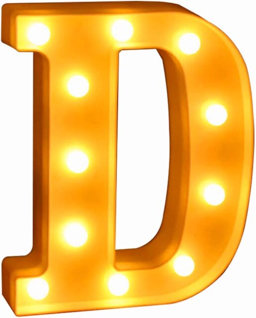 Amazonにて「Marquee Lights LED Lights, Letter and Number Shape, Battery Operated, Initial Light, Decorative, Alphabet, Event, Wedding, Party, Gift (D)」が特価1880円で販売中です。
