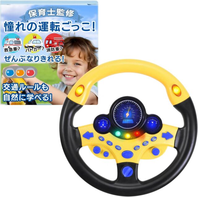 Amazonにて「Steering Wheel Toy (Nursery Supervision x Pretend Driving Your Dreams! Ambulance? Police car? Fire truck? It can be used as a warm-up! Learn traffic rules naturally with the x signal mode. ] (1」が特価1782円で販売中です。