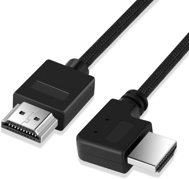 Amazonにて「SHULIANCABLE Ultra-Slim 8K HDMI 2.1 Right Angle 90 Degree Right-Facing Cable, L-Shaped Flexible Slim High-Speed Cord 4K@120Hz 8K@60Hz Type-A Male to Male Computer HDTV (Right Angled, 1M)」が特価