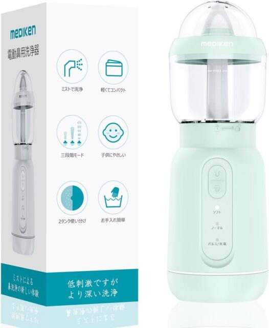 Amazonにて「Mediken ME107 Nose Cleaner, Supports Soft, Normal, and Pulse Modes, Soft Nozzle, Easy to Use, Suitable for All Ages, Includes Storage Bag, Convenient to Carry, Green」が特価5140円で販売中です。