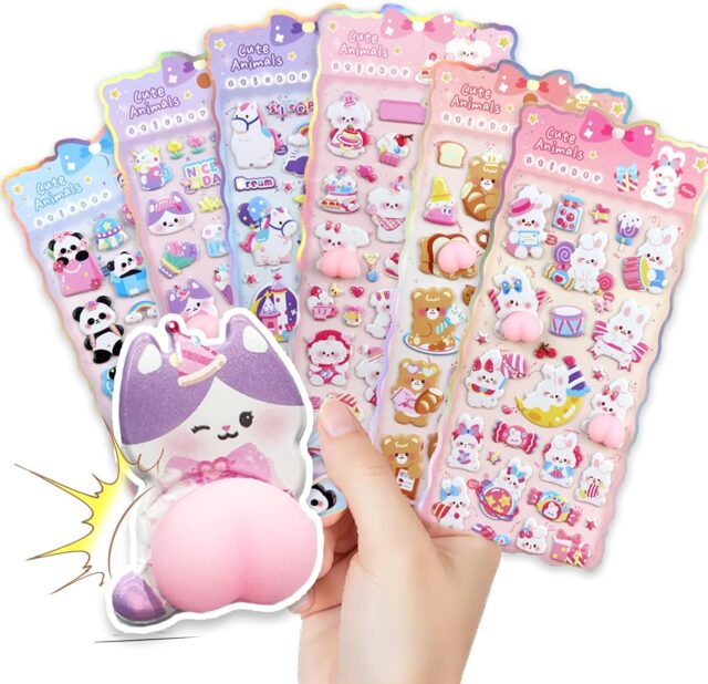 Animal Butt 3D Stickers, 3D Squishy Texture, Sticky PVC Material, Cute Animal Design, Repositionable, Easy to Apply, Notebook, Diary, Notebook, Smartphone Decoration, DIY”]