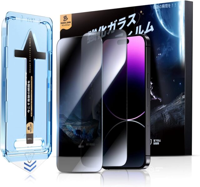 2180円が1904円!【Anti-Peeking】MAGIC JOHN Compatible with iPhone 14 Pro Glass Film 2-Piece Set with Integrated Guide Frame, Easy to Apply, Bubble-Free, 9H Hardness, Tempered Glass #タイムセール #特価 #PR