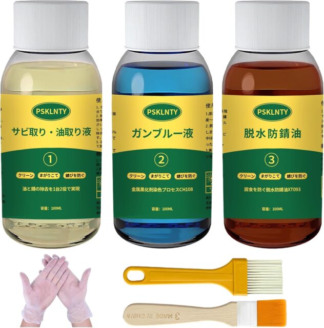 Amazonにて「Gun Blue Liquid, Rust Remover, Rust Stop Liquid, 3-in-1 Set 400g for Black Dyeing of Iron, Steel, Cast Iron at Room Temperature, Rust Removal and Rust Prevention Maintenance for All Iron Products」が特価2599円で販売中です。