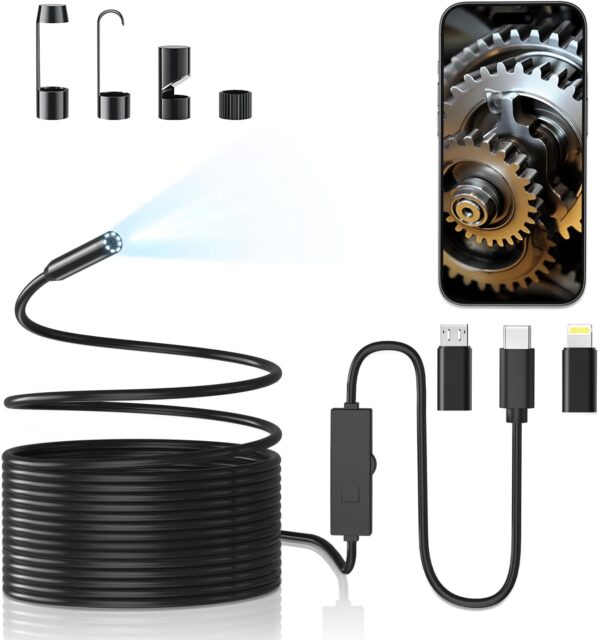 Amazonにて「Fiber Scope, 2 Megapixels, Endoscope Camera, Microscope, 1920P, HD IP67 Waterproof, 8 Pieces High Brightness Dimmable LED, USB Type-C Lightning Connection, Microscope, Compatible with iOS」が特価2517円で販売中です。