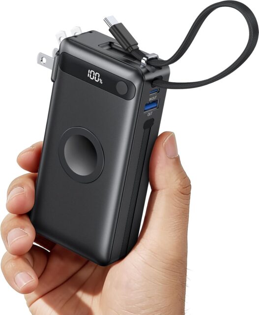 Amazonにて「2026 New Mobile Battery with Outlet, Integrated 10,800 mAh, Apple Watch Compatible, PD22.5 W, Built-in USB C / Lightning Cable, AC Plug Included, LED Power Display, Charges 5 Devices Simultaneously」が特価2799円で販売中です。
