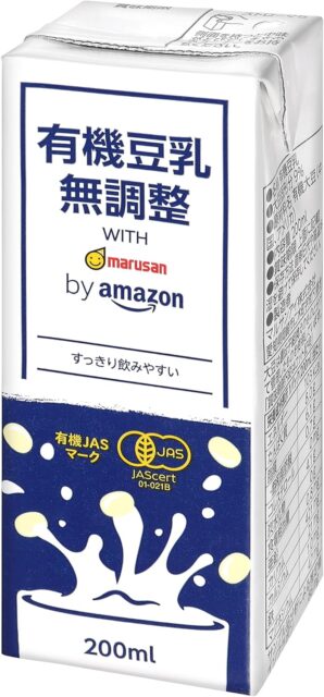 Amazonにて「by Amazon マルサン Organic Pure Soy Milk 200 ml x 24-pack」が特価1424円で販売中です。